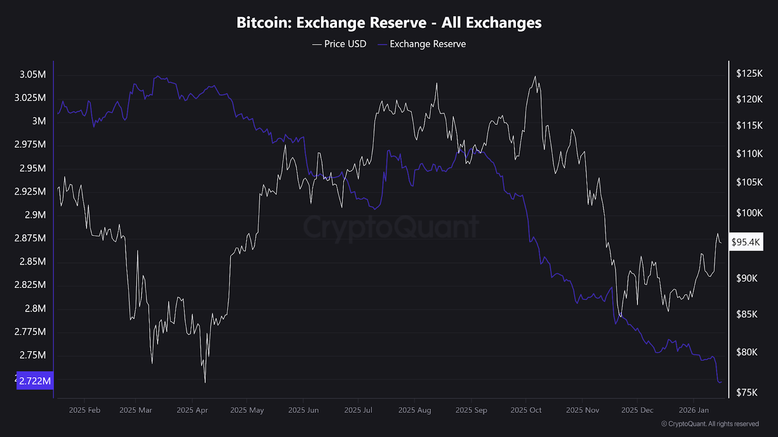 On-chain data paints a supportive, though nuanced, picture. While some smaller holders exited during recent volatility, larger participants appear to be stepping in. Exchange balances have fallen to multi-month lows, meaning fewer coins are readily available for sale. This typically reduces immediate selling pressure and increases sensitivity to new demand. In recent months, similar declines in exchange reserves have coincided with local price bottoms rather than tops.